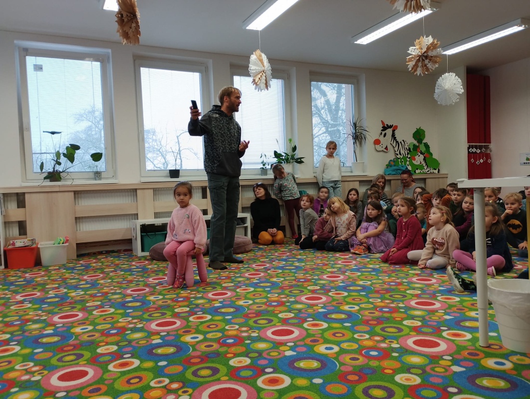 Měli jsme pro děti milé překvapení – navštívil nás Jakub Vágner, který nám poutavě vyprávěl o svých zážitcích z přírody. Děti se dozvěděly mnoho zajímavostí o zvířatech, cestování i o tom, jak důležité je přírodu chránit.