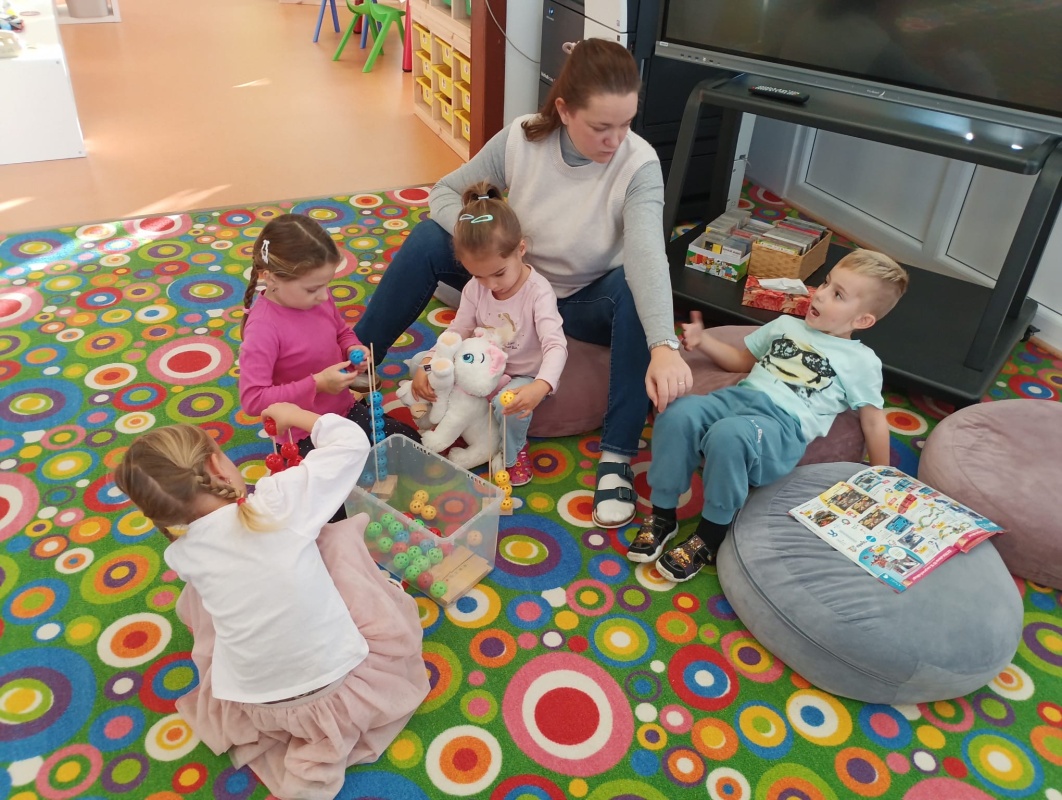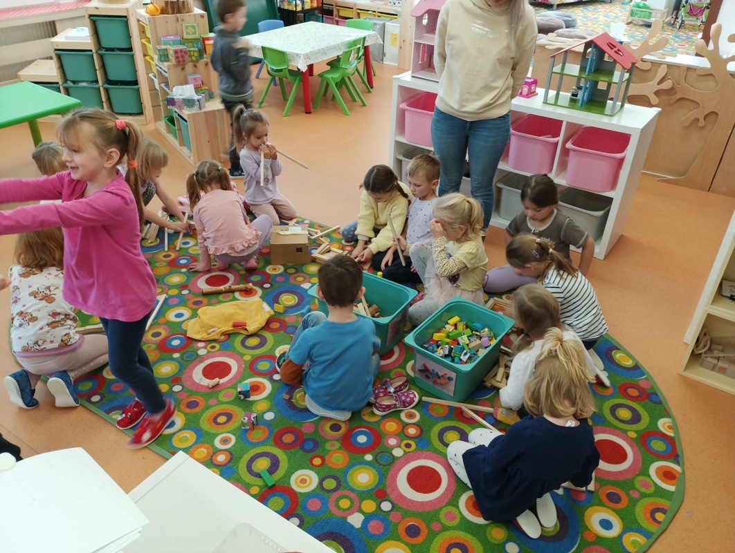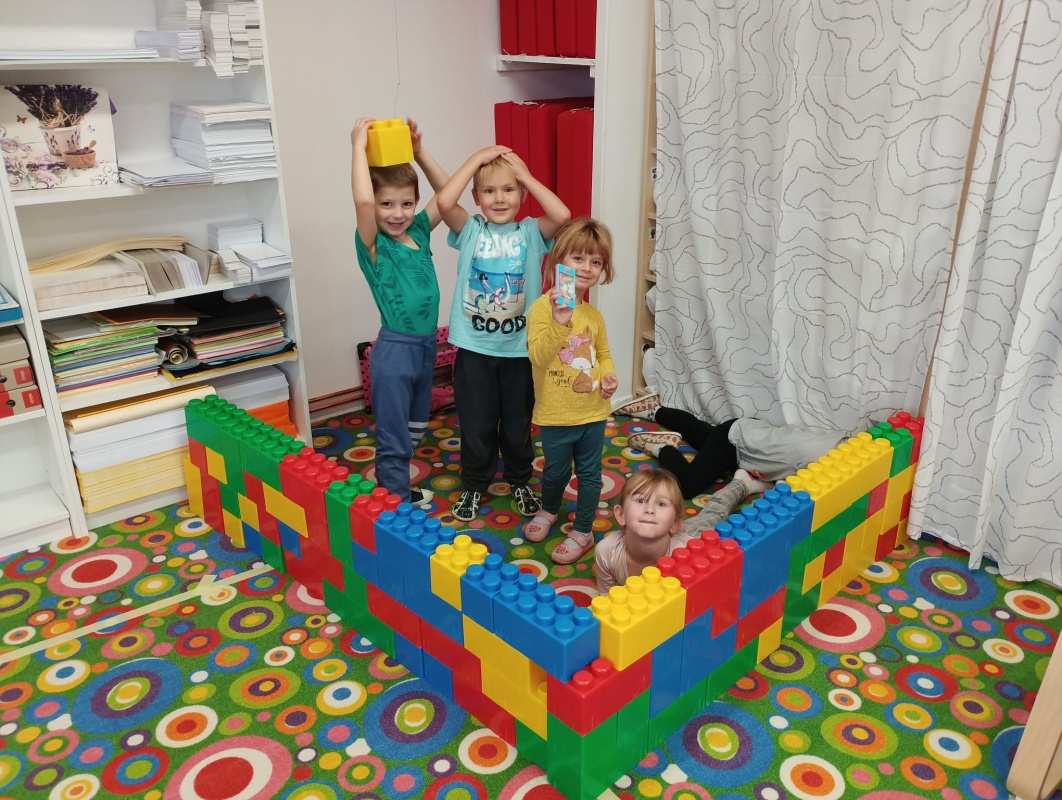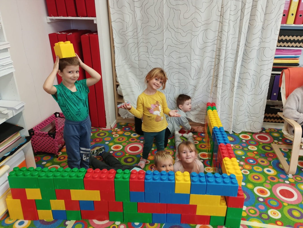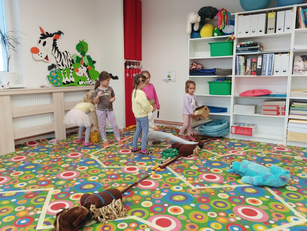 Ve výtvarné činnosti jsme si pak vytvořili vlastní „malé Janovice“. Děti stavěly vesnici z vyřezaných kartonových domečků, které si samy dozdobily.
