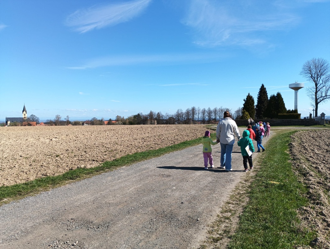 Kromě pohybových aktivit v tělocvičně jsme využili i krásného počasí během týdne a vyrazili na společnou procházku. Děti měly možnost pozorovat okolní přírodu, vnímat změny jarního období a nadechnout se čerstvého vzduchu. Procházka byla příjemným zpestřením běžného programu a zároveň poskytla prostor pro spontánní rozhovory i objevování.