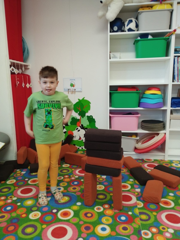 Hned na začátku se děti rozběhaly při různých pohybových hrách, které podpořily jejich radost z pohybu i spolupráci ve skupině. Postupně jsme zařadili i jednoduché překážkové dráhy, při kterých děti překonávaly samy sebe. Některé z nich zpočátku váhaly, ale s podporou a povzbuzením dokázaly překonat svůj strach – ať už při skocích, lezení nebo balancování. Právě tyto malé úspěchy byly pro děti velmi důležité a posilovaly jejich sebevědomí.