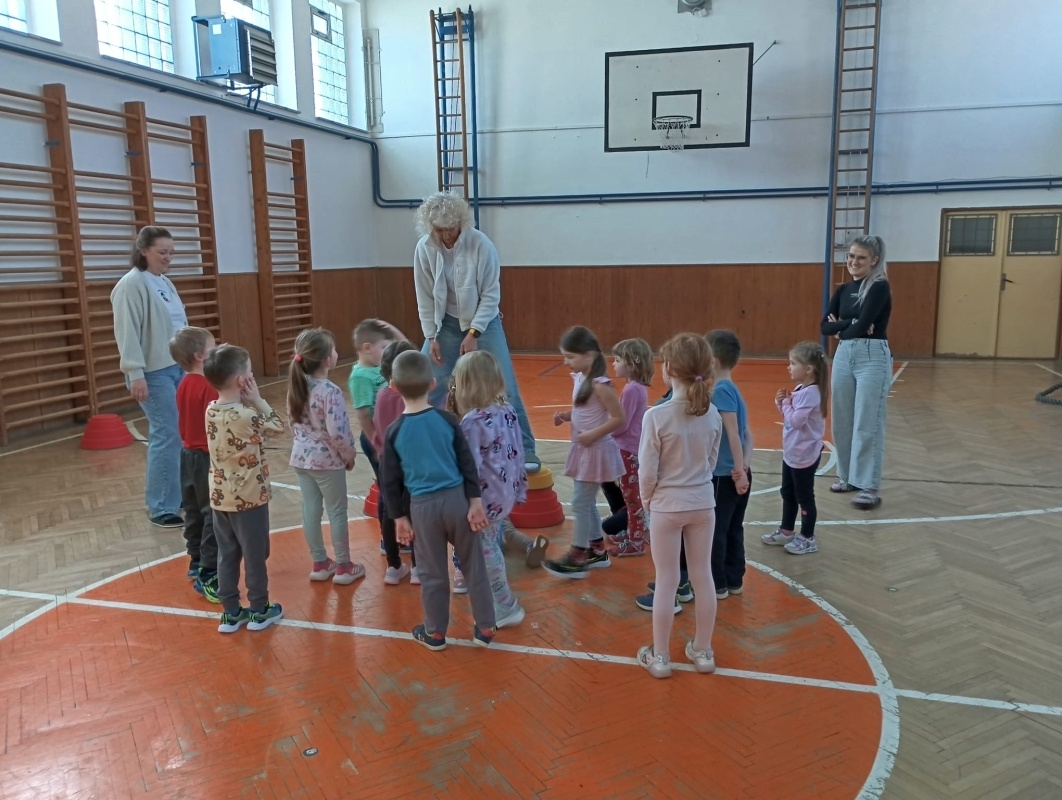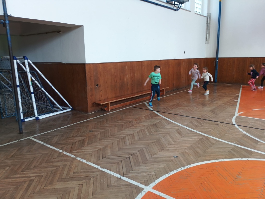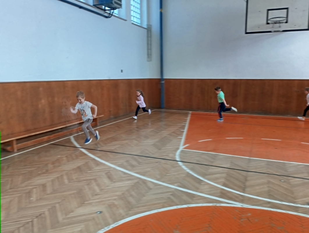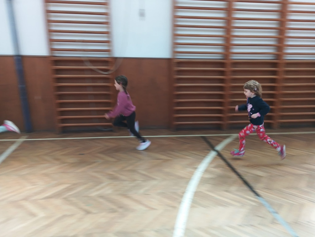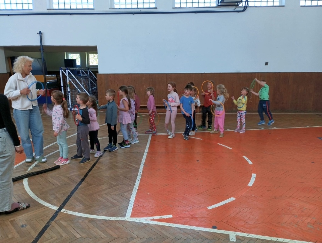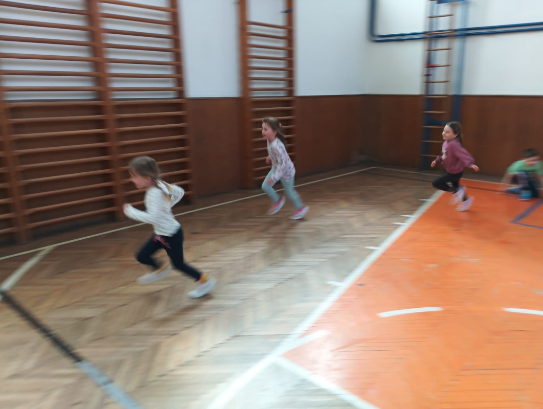 Nechyběly ani oblíbené hry, při kterých si děti procvičily rychlost, postřeh i schopnost reagovat na pravidla. Celá hodina se nesla v radostné atmosféře a bylo vidět, že si děti pohyb opravdu užívají.