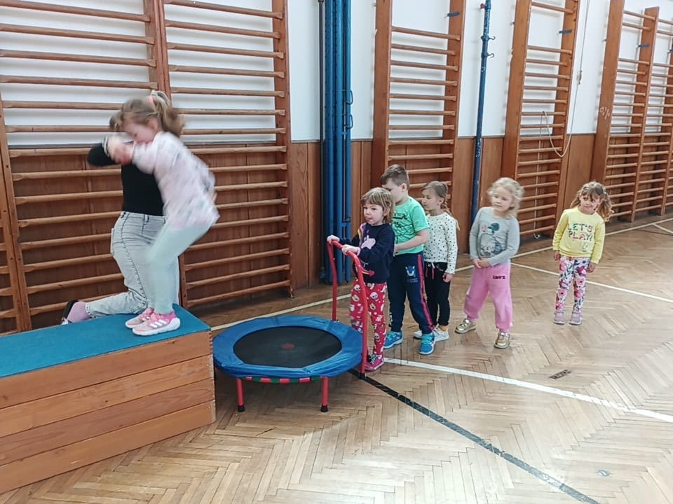 Jako každé úterý jsme se s dětmi vydali do tělocvičny, kde na ně čekal pestrý program plný pohybu, her a nových výzev. Děti měly možnost nejen vybít svou energii, ale také rozvíjet své pohybové dovednosti a posilovat odvahu.
