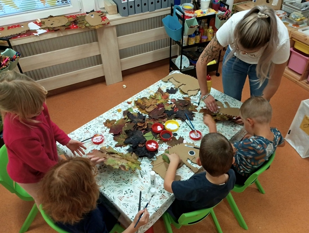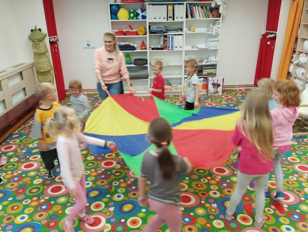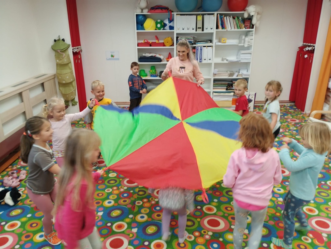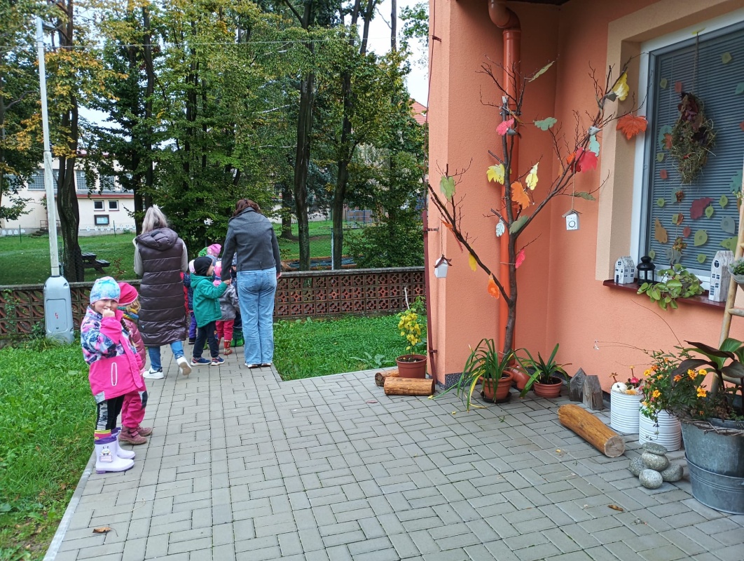 Během podzimního týdne jsme vyrazili na procházku, kde děti pozorovaly změny v přírodě – padající listí, zbarvené stromy a drobné podzimní plody. Ve třídě jsme tvořili z listů – vyráběli jsme ježky, rozvíjeli jemnou motoriku a fantazii. Součástí aktivit bylo i cvičení s padákem, které dětem přineslo spoustu zábavy a radosti. Děti si podzimní týden opravdu užily.