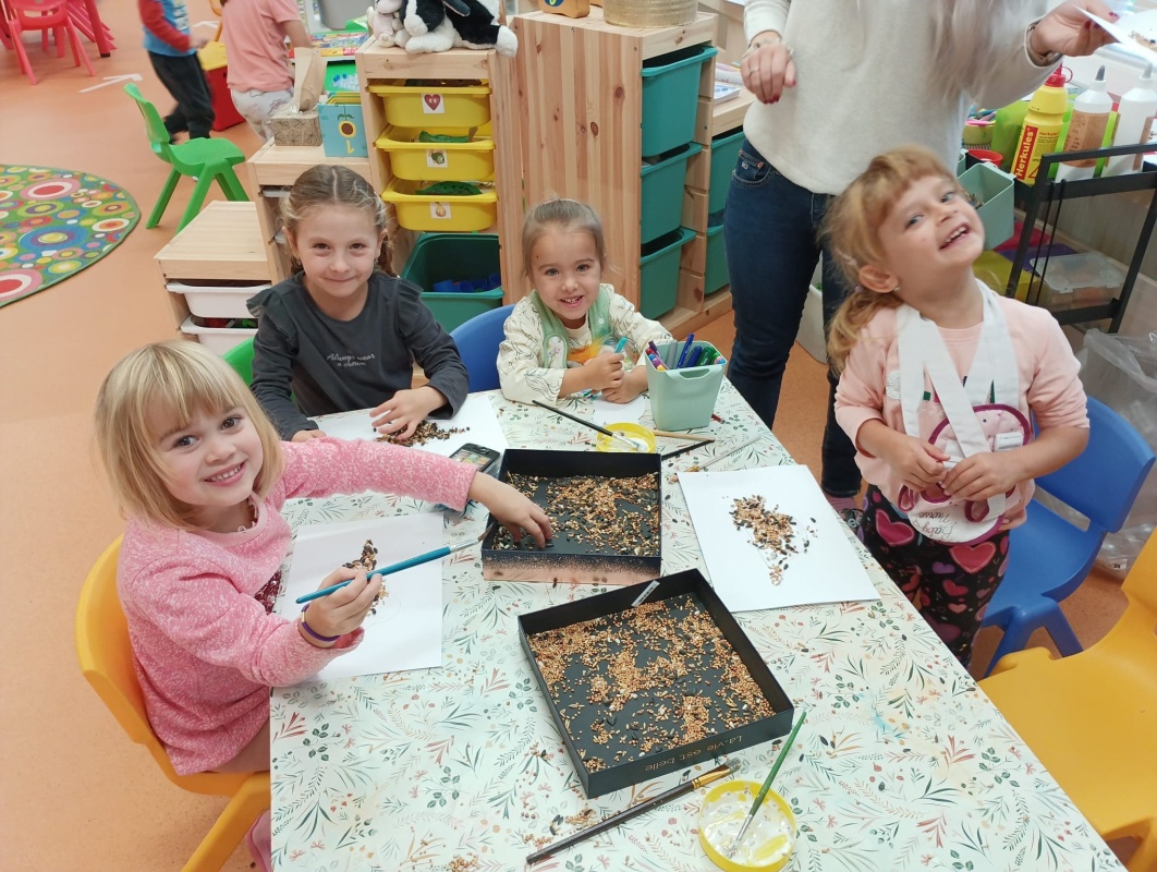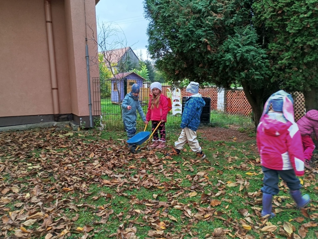 Podzim nám přinesl spoustu zajímavých aktivit! Společně jsme tvořili obraz ze semínek pro ptáčky, který se stal nejen krásnou dekorací, ale také dobrotou pro naše ptačí kamarády. Poté jsme se pustili do práce na školní zahradě – hrabali jsme spadané listí a pomáhali s úklidem, abychom měli zahradu připravenou na zimu.