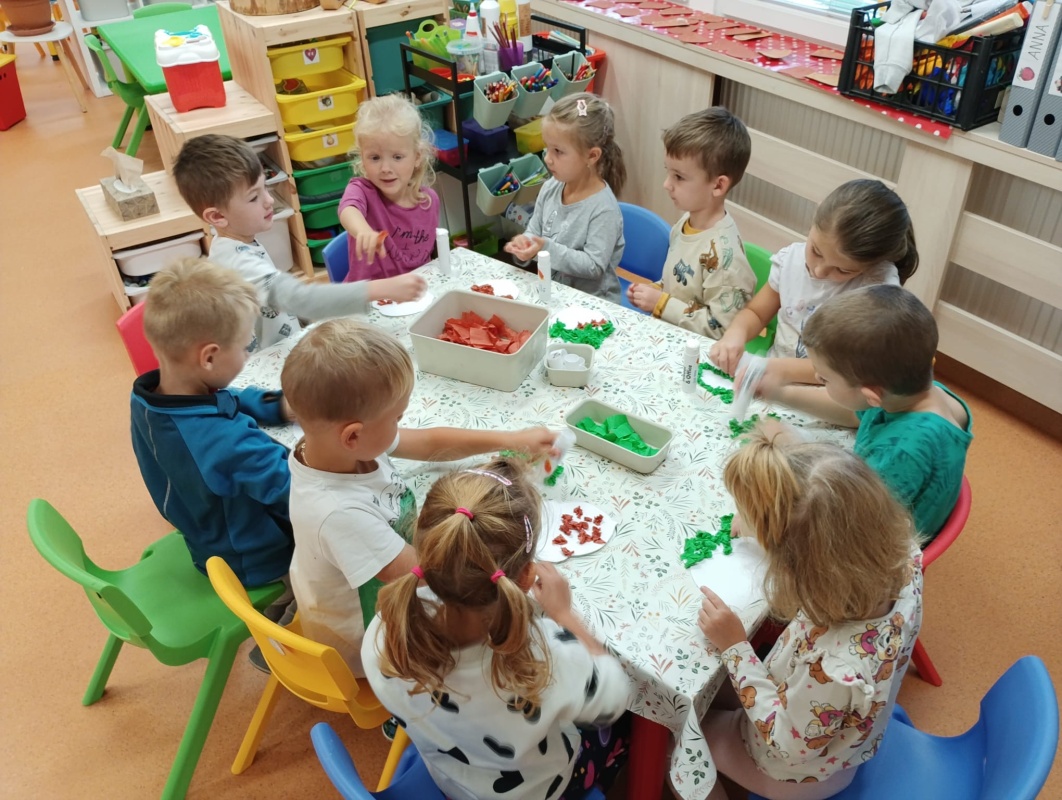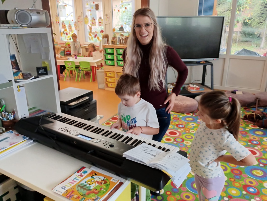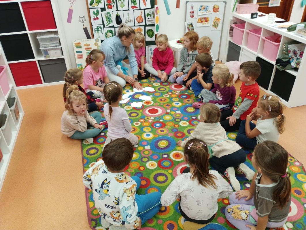 Tento týden jsme se s dětmi věnovali tématu ovoce a zelenina. Povídali jsme si o tom, kde ovoce a zelenina roste, jaké mají barvy, tvary i chutě. Děti se učily poznávat různé druhy, třídily je podle barev a velikosti a dozvěděly se, proč je důležité jíst zdravě. Společně jsme si vyrobili spoustu krásných výtvorů – děti malovaly, otiskovaly a tvořily z papíru i dalších materiálů. Nechyběly ani hudební chvilky – hráli jsme na klávesy a zpívali písničky o ovoci a zelenině. Na závěr týdne děti čekalo zábavné hledání pokladu, při kterém plnily různé úkoly a společně objevily zaslouženou odměnu.