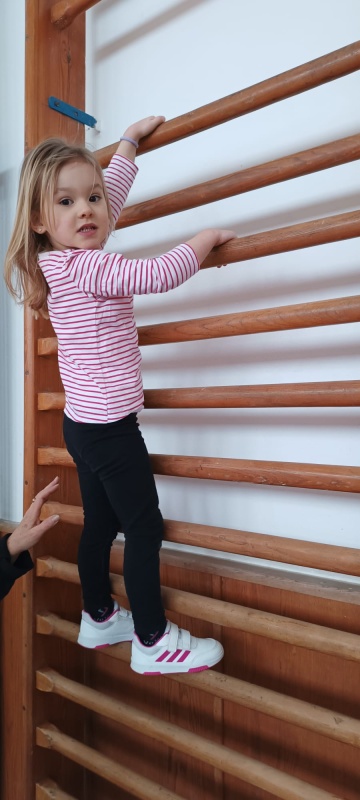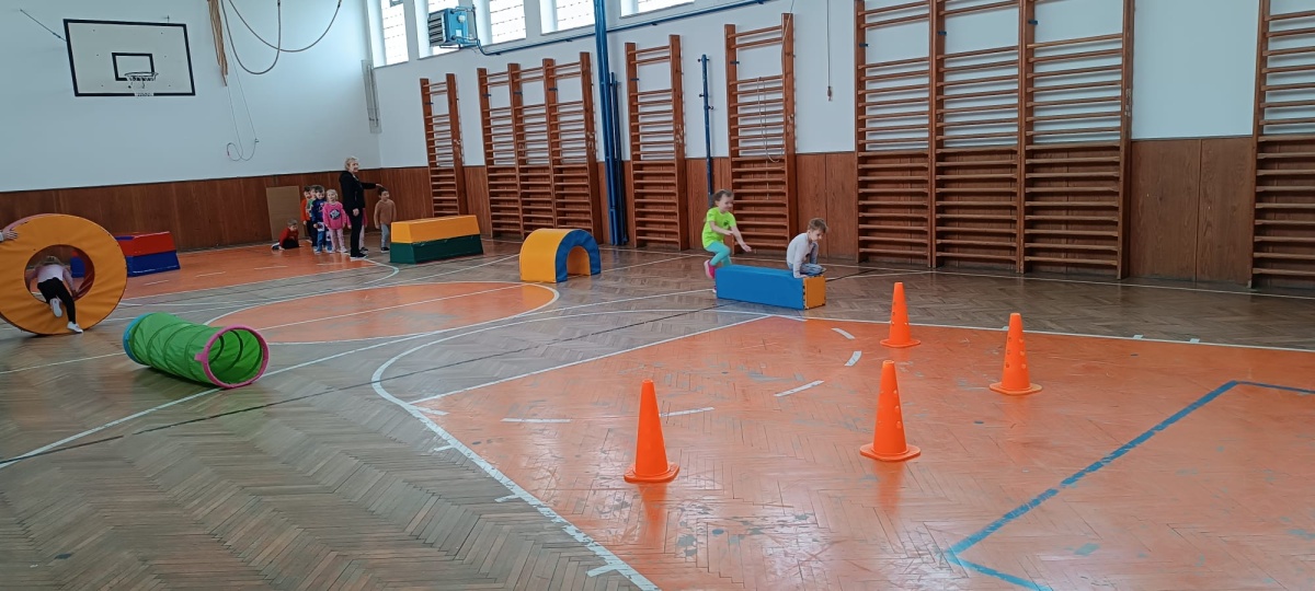 Každý čtvrtek chodíme s dětmi do tělocvičny základní školy, kde mají dostatek prostoru k pohybu a hrám. Procvičujeme obratnost, rovnováhu i spolupráci při různých pohybových aktivitách a opičích drahách. Děti si cvičení velmi užívají a pravidelný pohyb se stal oblíbenou součástí našeho týdne.