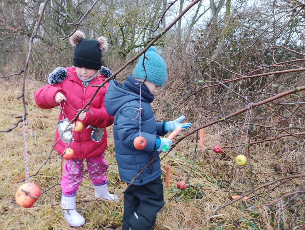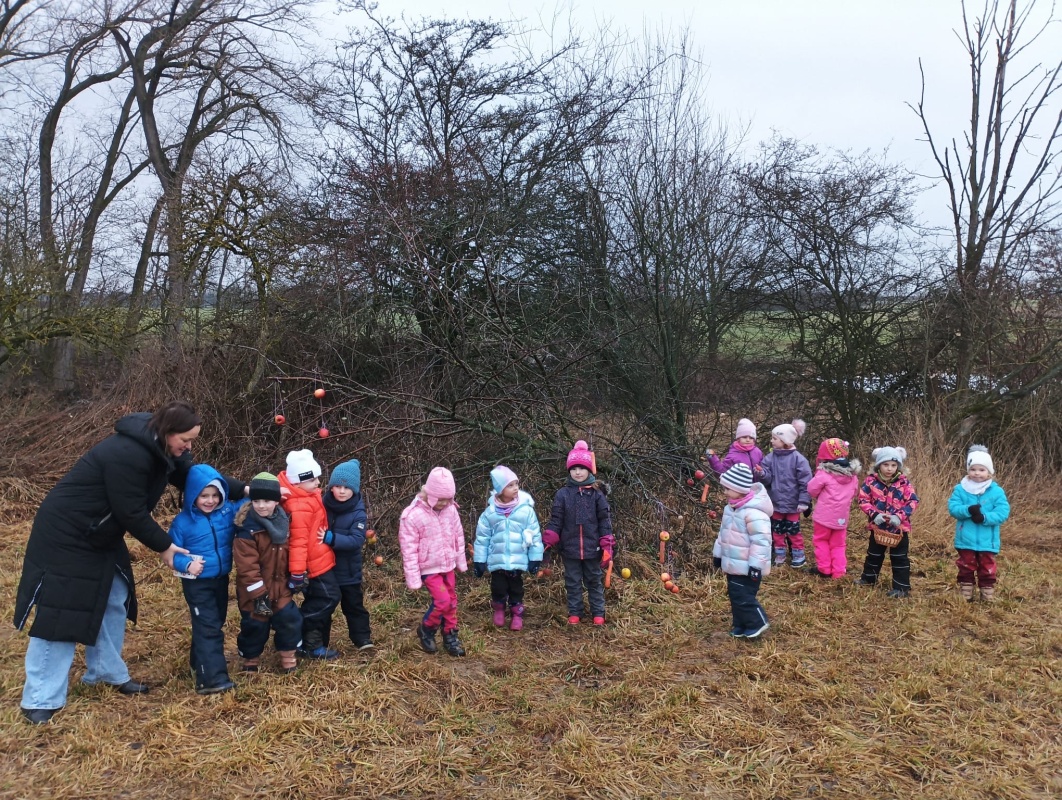 Na závěr týdne jsme se vydali ven připravit zvířátkům hostinu. Děti s nadšením pomáhaly s krmením ptáčků a dozvěděly se, proč je důležité o přírodu pečovat. Celý týden byl plný radosti, objevování a nových poznatků o světě zvířat v zimě.