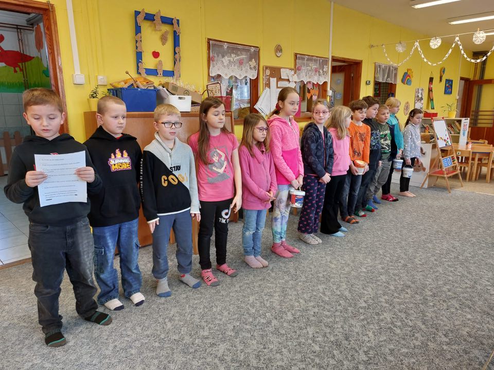 Krmivo společně s informacemi jsme pak v rámci vyučování prvouky ve 2. a 3. ročníku nesli do obou oddělení MŠ a do školní jídelny. Nakonec jsme naše poznatky přečetli i ostatním dětem ve škole.