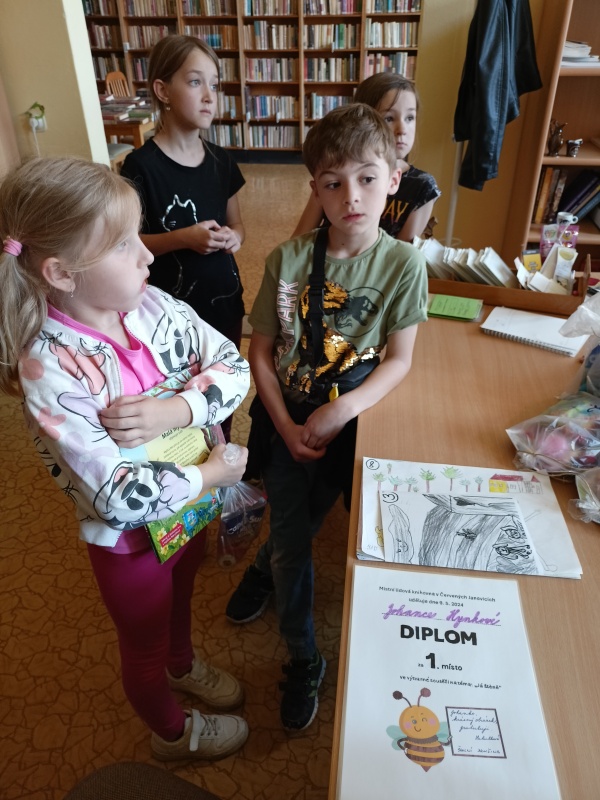 Ve čtvrtek 9. května jsme navštívili Místní lidovou knihovnu, abychom si předali diplomy a ocenění za výtvarnou soutěž na téma ,,Já štěně ". Dostali jsme opět krásné a sladké ceny od paní knihovnice.