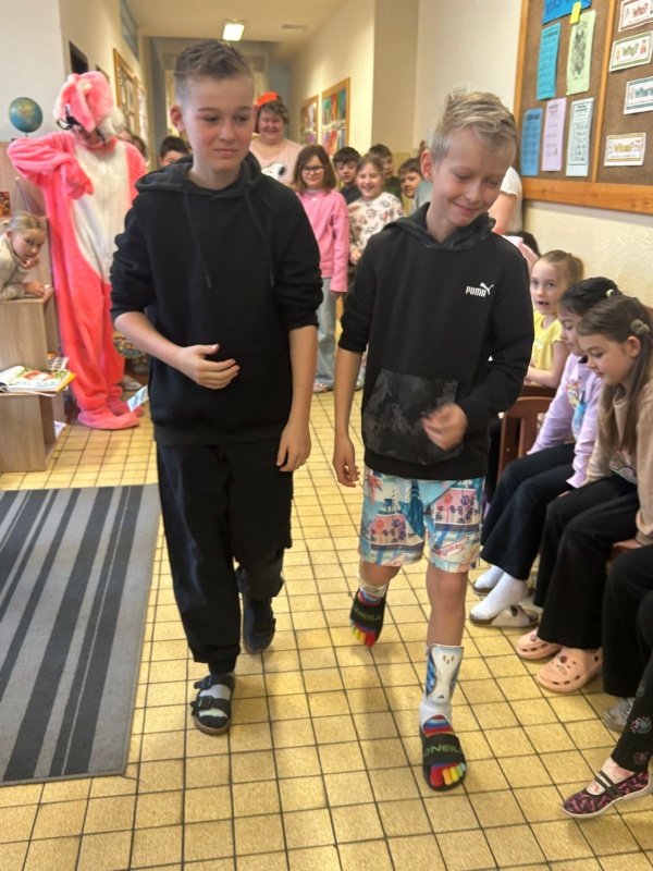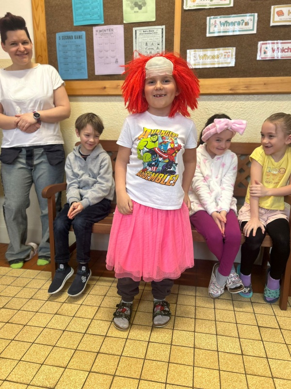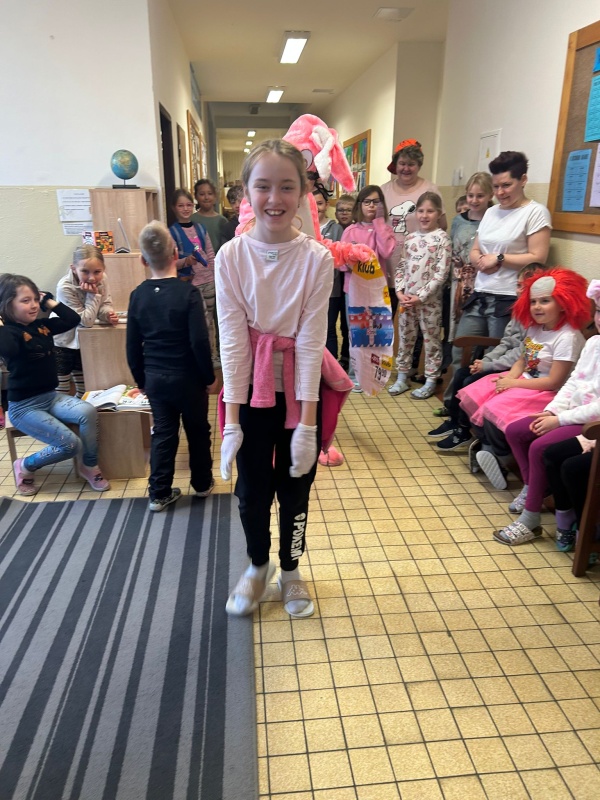 Dnes jsme si oblékli bláznivé oblečení, protože byl apríl. Na chodbě jsme si udělali malou módní přehlídku, kde každý mohl ukázat svůj nápaditý outfit. Bylo to veselé, barevné a plné smíchu. Většina dětí se opravdu vyřádila a předvedla úžasnou kreativitu.